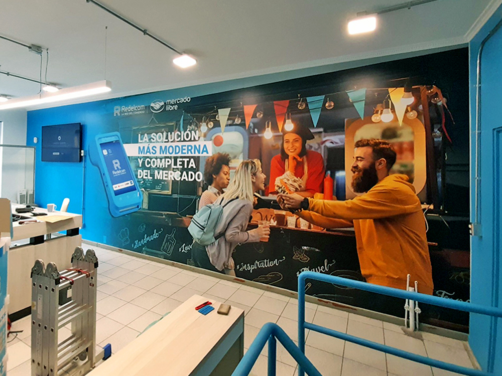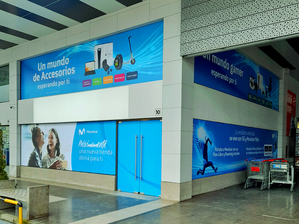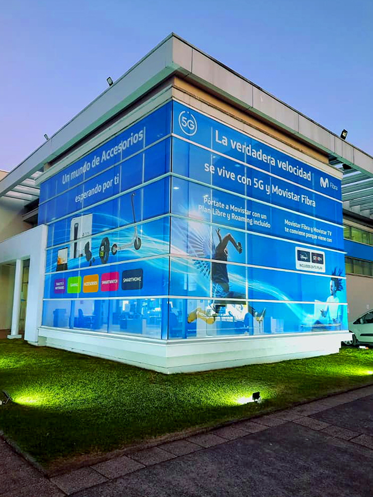 Impresión de adhesivos para ventanas, muros o emplacados en planchas de sintra, ademas de impresión en window vision para ventanas, el cual permite no ver hacia dentro de una oficina o local, pero no así desde adentro hacia afuera.